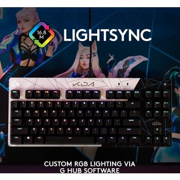 Logitech G Pro K/DA LOL Mechanical Gaming Keyboard, Tenkeyless Design, Detachable Micro USB Cable, 16.8M Colour LightSync RGB, English QWERTY Layout, Black/White | 920-010077