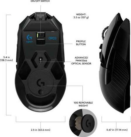 LIGHTSPEED WIRELESS: latency can be the difference between winning it all or losing. LIGHTSPEED wireless technology features a 1 ms report rate for competition-level twitch targeting ADVANCED PMW3366 SENSOR: equipped with the PMW3366 optical sensor—zero smoothing, filtering, or acceleration across the entire DPI range (200-12,000DPI) at speeds over 400 IPS ADVANCED MECHANICAL BUTTON TENSIONING: delivers an exceptionally clean and crisp button feel, response, and consistency POWERPLAY Wireless Charging-Compatible: the world’s first and only wireless gaming mouse charging system, to keep G903 (and G703) charged while at play and at rest CUSTOMIZABLE DESIGN: configurable button layout and ambidextrous design allow for left- or right-handed use that works with nearly any m