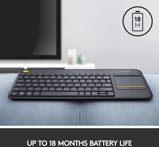 Logitech K400 Plus Wireless Livingroom Keyboard with Touchpad for Home Theatre PC Connected to TV, Customizable Multi-Media Keys, Windows, Android, La