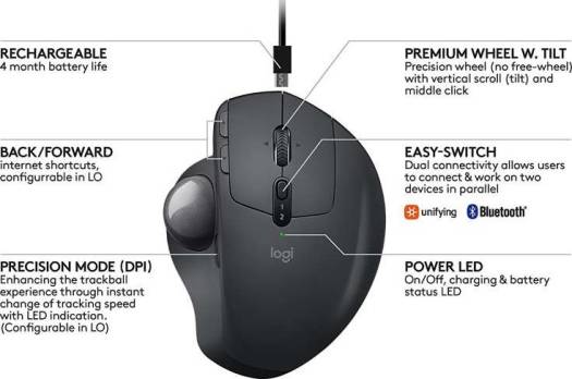 Logitech MX ERGO Advanced Wireless Trackball Mouse, for Windows PC and Mac | 910-005179