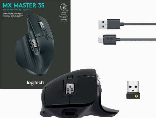 Logitech MX Master 3S Wireless Performance Mouse, With Ultra Fast Scrolling, 7 Buttons, 8000 DPI Resolution, Quiet Clicks, USB-C, Bluetooth, 10m Operating Distance, Graphite | 910-006559