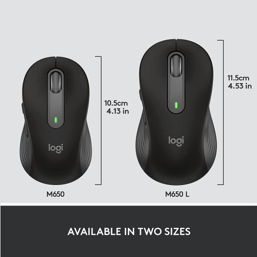 SMARTWHEEL SCROLLING Make scrolling work for you with Logitech SmartWheel. Get line-by-line precision when you need to focus on the details, and scroll super fast when you just want to breeze through lengthy pages. Automatically switch modes with the flick of your finger. THE PERFECT FIT FOR YOUR HAND Choose the Signature M650 that fits you best. We recommend the M650 for small-to-medium hands, M650 L for large-sized hands, and M650 L Left for left-handed users. Unsure which mouse is right for you? Check out our sizing guide below. COMFORT, UPGRADED You’ll enjoy working with your Signature M650. Each mouse features a contoured shape, soft thumb area, and rubber side grips that keep your hand snug and in place. Get more comfort and focus more on what you need to get done. CONNECT YOUR WAY. WORKS ON MULTIPLE PLATFORMS. SKU: SKU-55B5A773 Category: Computer Mouse Brand: Logitech