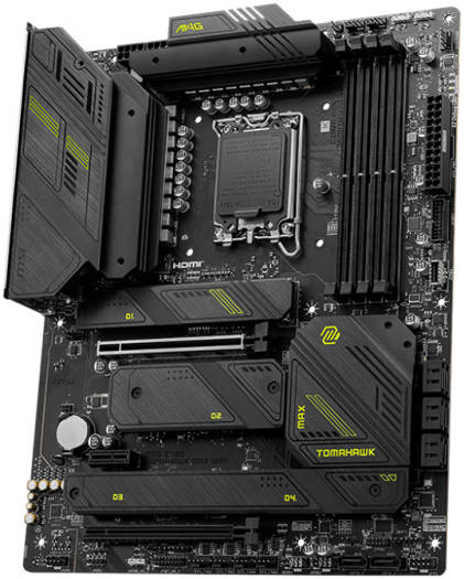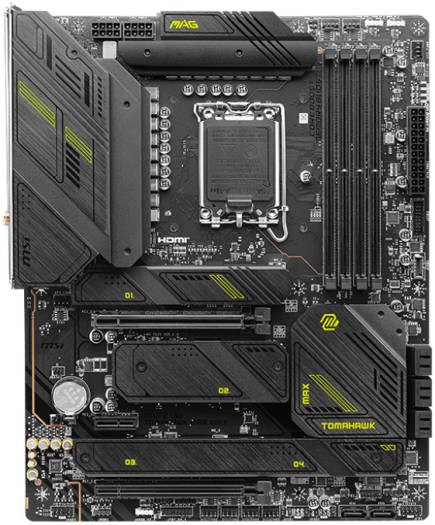 MAG Z790 TOMAHAWK MAX WIFI MAG Z790 TOMAHAWK MAX WIFI is designed for gamers, providing a stable, solid, and durable foundation for their PC builds. Coming up with Wi-Fi 7 solution, 2.5G LAN, DDR5, PCIe 5.0 solutions, and exclusive M.2 Shield Frozr, it’s ready for Intel® 14th Gen and 13th Gen Core processors. Key Features Support Intel ® Core™ 14th/ 13th/ 12th Gen Processors, Intel ® Pentium ® Gold and Celeron ® Processors for LGA 1700 socket Supports DDR5 Memory, up to 7800+(OC) MHz Enhanced Power Design: 16+1+1 Mirrored Power Arrangement, dual 8-pin CPU power connectors, Core Boost, Memory Boost Lightning Fast Game experience: PCIe 5.0 slot, Lightning Gen 5 M.2, USB 3.2 Gen 2×2 Premium Thermal Solution: Extended Heatsink Design and M.2 Shield Frozr are built for performance systems and non-stop works AUDIO BOOST 5: Reward your ears