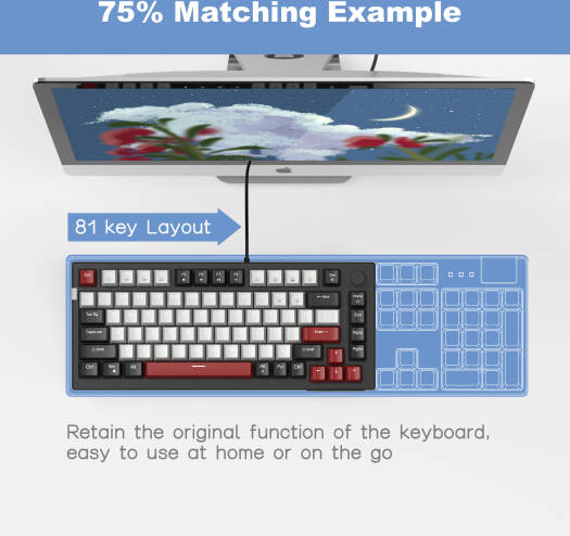 SKY81 Comfortable Typing Experience And Full 83 Keys Anti-ghosting SKY81 is with two switches for options: Red / Blue. You can choose the one you like. The stepped layout provides you with an ergonomic angle for typing. Advanced anti-ghosting technology allows all 83 keys to work simultaneously to provide a fast typing response. All Switches Hot-Swappable SKY81 is compatible with most of the 3-pin switches on the market. Enjoy the fun of DIY your keyboard. Typing without key conflict, quick triggering with continuous skills, and Lock Win shortkey wihtout accidental touch will bring your more high-speed typing in gaming experience.