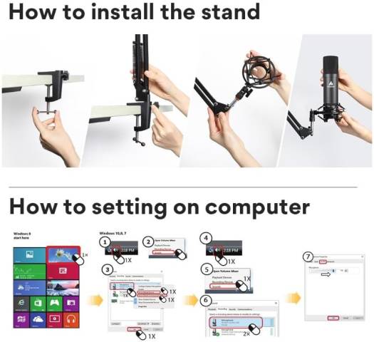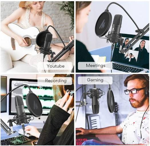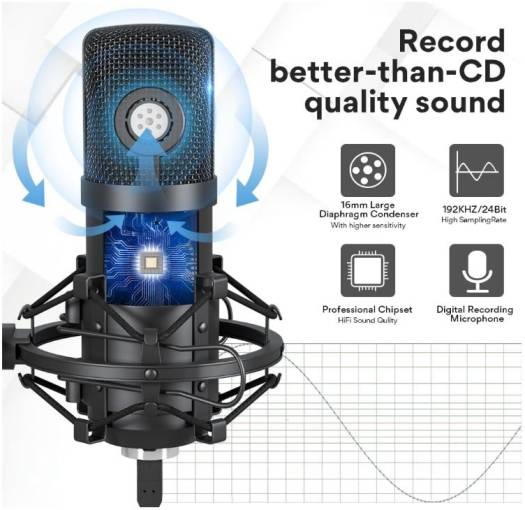 A classic USB microphone features a good cardioid polar pickup pattern, high output, and low self-noise function, compatible with windows, mac, and ios. which is easy to install, and set up, and suitable for podcasting, recording, live streaming, gaming, and video making, it is quite a good choice for most podcast beginners and professionals. Cardioid Polar Pattern Effectively reduce the noise interference on the back of the microphone and provide clearer recordings. 16MM Large Diaphragm Condenser With the professional sound chipset, which lets the USB microphone hold a high-resolution sampling rate. Sampling Rate: 192kHz/24bit Sturdy Metal Design Made of high-quality metal and high elasticity rope. The suspension boom scissor arm stands is fully adjustable in all parts. arms of the stand are extensible at 135° back and forth, and 180° up and down