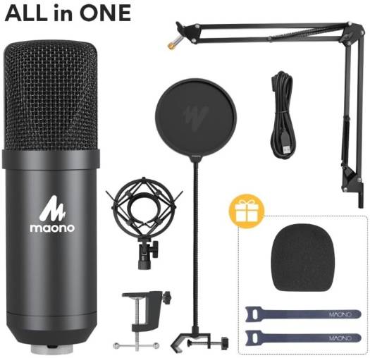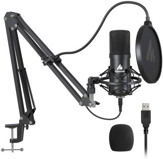 Maono Studio Microphone Kit, USB Connection, Table Spring Loaded Boom Arm, Pop Filter, Diameter 16mm Condenser, 30Hz-16kHz Frequency Response, 120dB Maximum SPL, Black | AU-A04