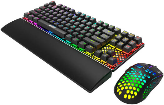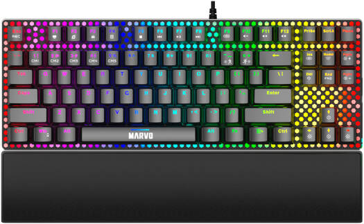MARVO CM373 Honeycomb Gaming Combo Set, TKL Red Switch Anti-Ghosting Keyboard, Optical 6400 DPI 7 Programmable Buttons Mouse, Cushioned Leather Wrist Res, 1.5m Cable Length, Black | CM373