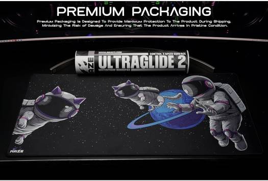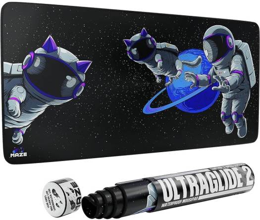 Maze 3XL Extended Mouse Pad/Mat – Astro Paw-B WATERPROOF – Designed to withstand of spills. With its advanced waterproofing technology, goodbye to the fear of ruining your desk organizers and accessories or the desk mat itself with water damage. ANTI FRAY – The Maze Ultraglide 2 is built to last with its anti-fray stitching feature. This ensures that the edges of the mousepad won’t fray or wear out even with constant use. ANTI SLIP – The Maze Ultraglide 2 is designed to stay in place during even the most intense gaming sessions or demanding work tasks, thanks to its rubber base. Won’t move, Won’t Slide. ULTRAGLIDE – Experience ultimate precision and control with the Maze Ultraglide 2. The specialized smooth surface ensures effortless mouse movement, allowing for fast response times and accuracy.