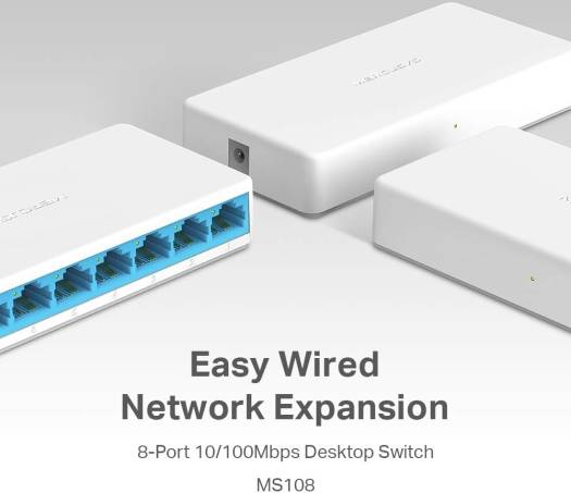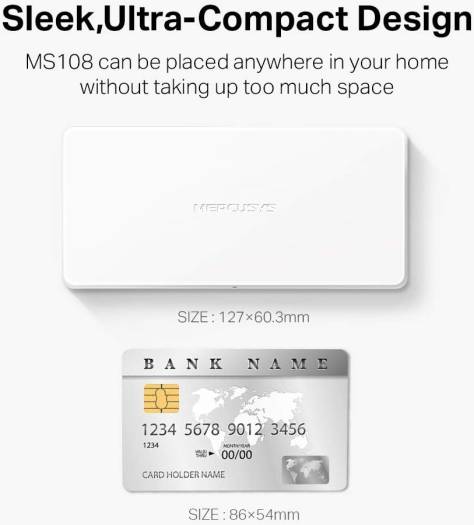 MERCUSYS 8-Port 10/100Mbps Desktop Ethernet Switch/Hub, Ultra-Compact Design, Plug & Play, no configuration required (MS108)