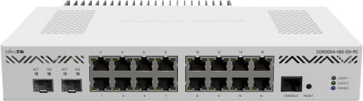 MikroTik Cloud Core 16 Port Router, 2 SFP+ Ports, RJ45 Console, 1200MHz Frequency, (2) 1G/10G Optical, 10/100/1000Mbps LAN, White | CCR2004-16G-2S+PC