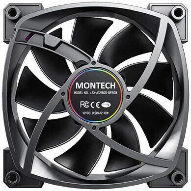 Montech AX120 PWM aRGB Case Fan, 120mm Fan Size, 1600 RPM Fan Speed, 59 CFM Fan Airflow, Rifle Bearing Type, 4PIN PWM Smart Control, Single Pack, Black | AX-120-BLACK