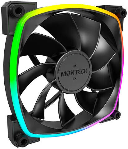 Montech RX120 PWM aRGB Case Fans, 120mm Fan Size, 1600 RPM Fan Speed, 59 CFM Airflow, Rifle Bearing Type, 4PIN PWM Smart Control, Sing Pack, Black | RX-120-BLACK
