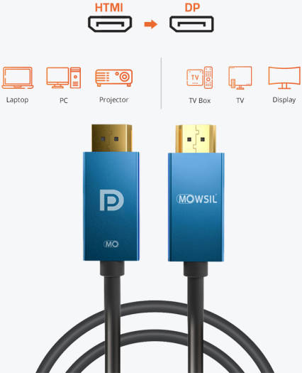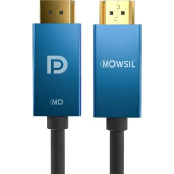 Mowsil HDMI to DisplayPort Adapter, HDMI Male to DP Male Cable Converter, Up to 4K @ 60/30Hz Resolution, 24K Gold Plated Connector, 2 Meter Cable Length- Black/Blue | MOHD02