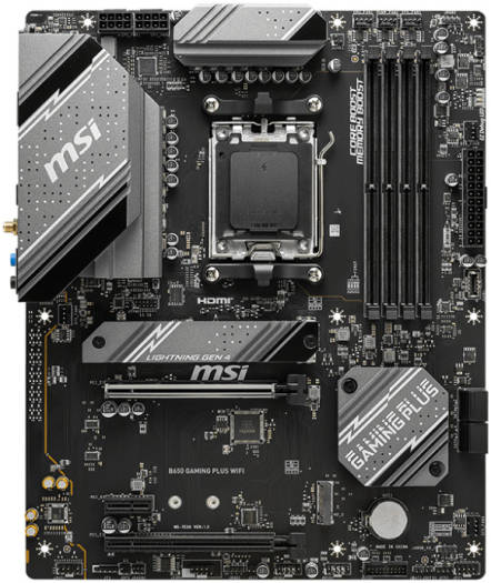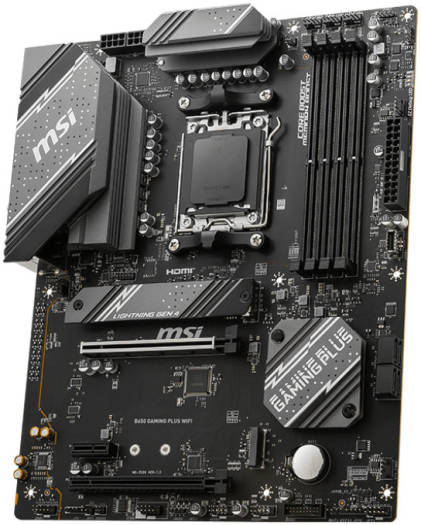 B650 GAMING PLUS WIFI Features Supports AMD Ryzen™ 7000 Series Desktop Processors Supports DDR5 Memory, Dual Channel DDR5 7200+MHz (OC) Enhanced Power Design: 12+2+1 Duet Rail Power System, dual 8-pin CPU power connectors, Core Boost, Memory Boost Premium Thermal Solution: Extended Heatsink, MOSFET thermal pads rated for 7W/mK, additional choke thermal pads and M.2 Shield Frozr are built for high performance system and non-stop work Lightning Fast Game experience: PCIe 4.0 slots, Lightning Gen 4 x4 M.2 with M.2 Shield Frozr, USB 3.2 Gen 2×2 20G 2.5G LAN with Wi-Fi 6E Solution: Upgraded network solution for professional and multimedia use. Delivers a secure, stable and fast network connection High Quality PCB: 6-layer PCB made by 2oz thickened copper Audio Boost: Reward your ears with studio grade sound quality for the most immersive gaming experience