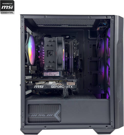 MSI Essential Gaming PC – Intel Core i5-14400F 10 Cores 16 Threads, AMD Radeon RX 7800 XT 16GB, 16GB DDR5 RAM 5600MHz, 1TB SSD Gen 4, 650W Gold PSU, Tower CPU Cooler