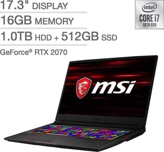 MSI GE75 Raider 10SF-484 17.3” Gaming Laptop, Intel Core i7-10750H, 16GB RAM, 1TB HDD + 512GB SSD, Nvidia GeForce RTX 2070/8GB, Windows 10 | GE75-10SF-484