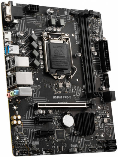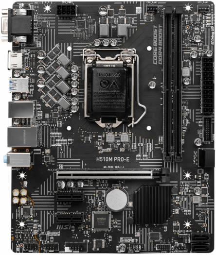 MSI H510M Pro-E Micro ATX DDR4 Motherboard, 11th Gen LGA1200, H510 Chipset, Realtek RTL8111 Gigabit LAN, 2x DIMMs (3200MHz), 64GB Max Memory, PCIe 4.0 x16, USB 3.2, HDMI | 911-7D23-004 / 911-7D23-006