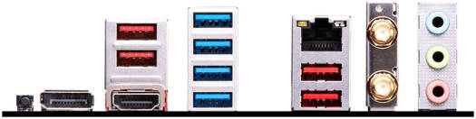 | BACK PANEL PORTS | USB 3.2 Gen 2 10Gbps (Type-A) USB 3.2 Gen 1 5Gbps (Type-A) 2.5G LAN Wi-Fi / Bluetooth Audio connectors Flash BIOS Button DisplayPort HDMI™ USB 3.2 Gen 2 10Gbps (Type-A) |
