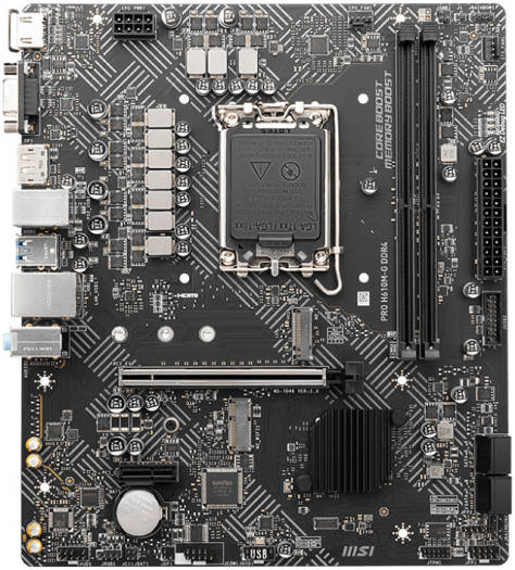 MSI Pro H610M-G DDR4 Micro-ATX Motherboard, Socket LGA 1700, H610 Chipset, 1x Intel I219V Gigabit LAN Controller, 2 DIMM Slots, M.2 Slot, PCI-E X16, SATA III, HDMI, VGA, DP | 911-7D46-031