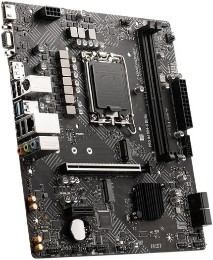 PRO H610M-G DDR4 Supports 12th/ 13th Gen Intel ® Core™, Pentium ® Gold and Celeron ® processors for LGA 1700 socket Supports DDR4 Memory, up to 3200(MAX) MHz Core Boost : With premium layout and digital power design to support more cores and provide better performance Memory Boost: Advanced technology to deliver pure data signals for the best performance, stability and compatibility Lightning Fast Experience: PCIe 4.0 Audio Boost: Reward your ears with studio grade sound quality Steel Armor: Protecting VGA cards against bending and EMI for better performance, stability and strength.