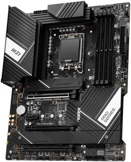 MSI PRO Z790-A WIFI Intel LGA 1700 ATX Motherboard, Z790 Chipset, 4x DDR5 192GB Memory Support, 2.5Gbps LAN, Wi-Fi 6E / Bluetooth, Lightning Gen 5, 4x M.2 Storage, 3x PCI-Ex16 Slot | 911-7E07-003