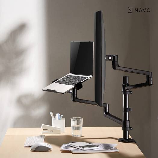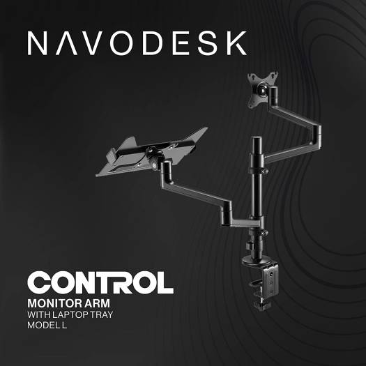 About this item Dual Monitor Capability: With a laptop tray and monitor arm, you can easily work with a PC and laptop at the same time Adjustable Viewing Angle: Both the laptop tray and monitor arm can be adjusted independently to achieve the perfect viewing angle for maximum comfort and productivity Wide Compatibility: The laptop tray fits laptops ranging from 11.6″ to 17.3″ and the monitor arm can accommodate monitors ranging from 17″ to 32″ Detachable VESA Plate: The included VESA plate makes it easy to securely attach your monitor to the arm, while the detachable design makes installation a breeze. High-Quality Construction: The Control Monitor arm Model L by Navodesk is built to last, with durable materials that ensure long-lasting performance