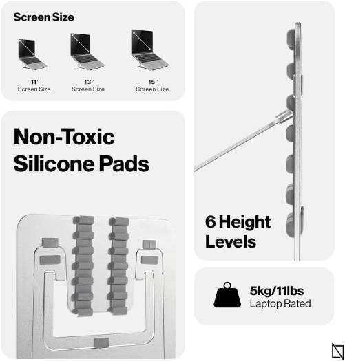 Navodesk NAVO Portable Laptop Stand & Riser, Holds up to 15″ Laptops, 6 Level Height Adjustable, Universally Compatible, Ergonomic Laptop Stand for Home Office, Medium, Silver | ND-PLR-SV
