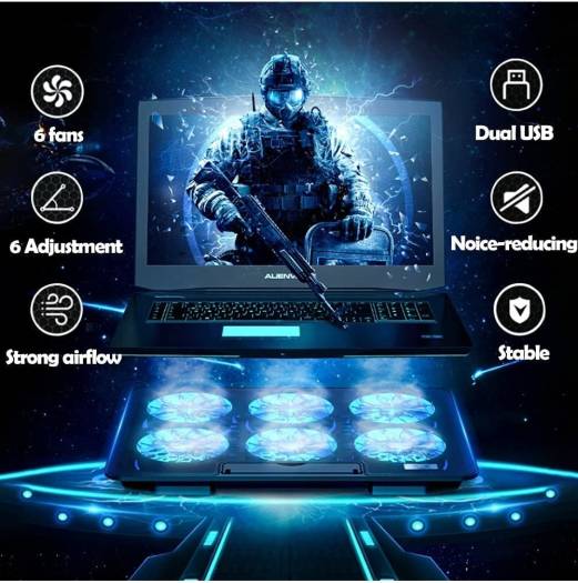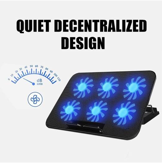 Necomi Laptop Cooling Pad, Laptop Cooler Stand with 6 Quiet Cooling Fans and 6 Height Adjustable Dual USB Powered Gaming Laptop Cooling Stand for 12-17″ Laptop, Black | SRQ-01
