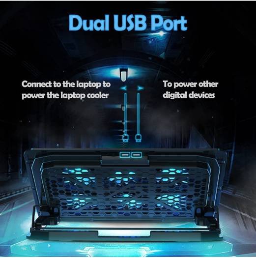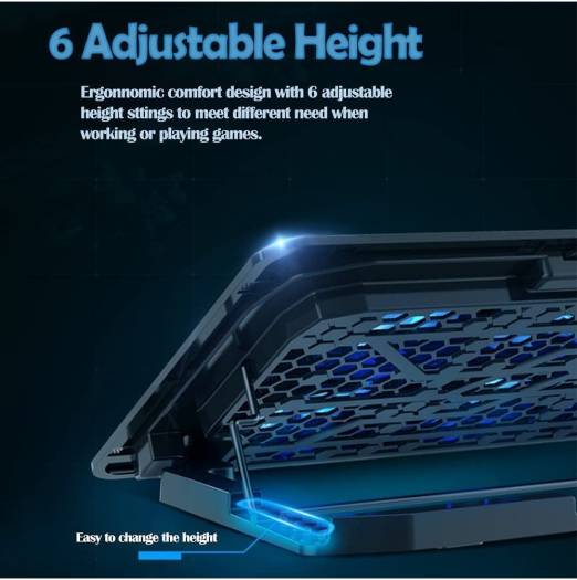 Super Laptop Cooling Fans – Necomi laptop cooling pad with the mesh design and the 6 fans spinning at speed 4500 RPM, the wind can be adjusted at 1600-2500 speed, greatly dissipate the heat from the laptop, enable it in good working condition, and prolong the lifespan of your laptop. Quiet Fan -The 6 fans of the laptop cooling stand are all added with capacitor components to reduce working noise. At the same time, the fan speed will not reduced, and no annoying noise. Suitable for work during the day and sleep at night. 6 Adjustable Stand heights & Ergonomic Comfort – Metal bar for ergonomic design at the bottom provides elevation mechanism, 6 adjustable stand heights which you can choose the most comfortable for you, helping to relieves neck pain caused by prolonged computer use and incorrect posture.A flip-up high quality grip at the bottom of the laptop cooler surface keeps your laptop from sliding off when it is elevated Dual USB Ports – Laptop cooling stand just plug in the USB port of your laptop to use. Equipped two USB 2.0 ports for data transmission or connecting