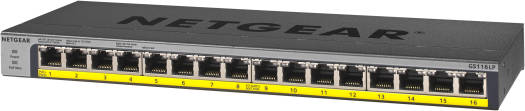 Netgear 16-Port Gigabit Ethernet PoE+ Switch, 76W Power, 32 Gb/s Bandwidth, 803.3at/802.3af Support, 1 RU Rack, Plug & Play, Gray | GS116LP-100EUS