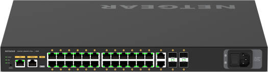 GSM4230PX 24x1G PoE+ 480W 2x1G and 4xSFP+ Managed Switch Designed with input from industry professionals, the AV Line M4250 GSM4230PX 24-Port Gigabit PoE+ Compliant Managed Network Switch from Netgear is engineered for 1G AV over IP. Enjoy 24 rear-facing PoE+ compliant RJ45 ports with a 480W power budget and four 10G SFP+ uplink slots that ensure a clean integration in AV racks and pre-configuration for out-of-the-box functionality. Key Features