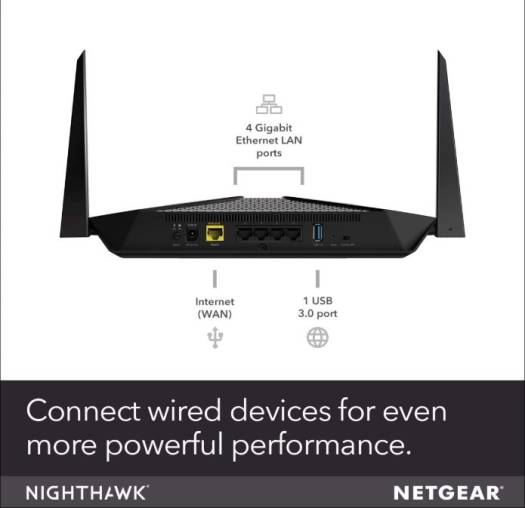 HIGH-PERFORMANCE ROUTER WITH THE LATEST WIFI 6 TECHNOLOGY The NETGEAR ® Nighthawk ® AX4 4-Stream AX3000 WiFi Router supports the latest generation WiFi 6 technology to provide greater network capacity with consistent and powerful signal strength to all your connected devices. The Nighthawk ® AX4 WiFi router delivers a new level of Gigabit WiFi connectivity so you can connect, stream and download faster to newer mobile devices. Powerful dual-core processor with a fully offloaded CPU increases overall performance of the network. OFDMA, 1024 QAM and 160MHz channel support vastly improve network efficiency to deliver 4 times the performance as compared to previous WiFi standards. Enjoy smoother streaming, faster downloads, and improved gaming and video conferencing Ultra-fast WiFi—Up to 3Gbp