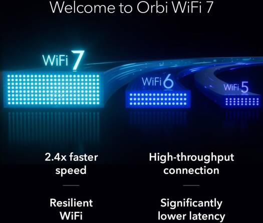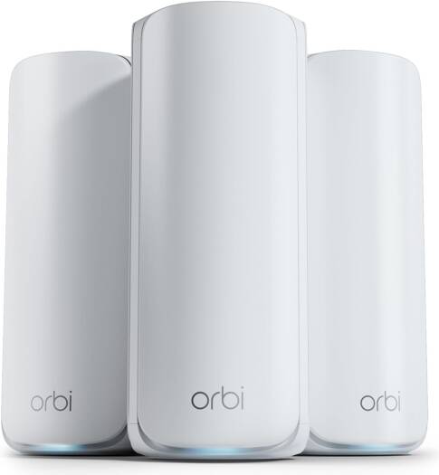 Netgear Orbi 770 Series Tri-Band WiFi 7 Mesh, Up to 8,000 sq. ft. WiFi Coverage, 5,760 + 4,320 + 688Mbps Speed, Tri-Band (2.4GHz, 5GHz, 6GHz), 3-Pack, White | RBE773-100EUS
