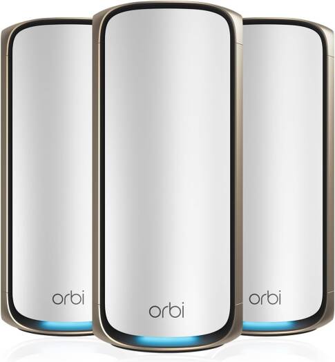 NETGEAR Orbi 970 Series Quad-band WiFi 7 Mesh, BE27000 Speed, Up to 6GHz Band, Up to 11,530 Mbps, 12 High-Performance Internal Antennas, Pack of 3, White | RBE973S