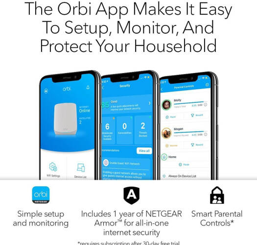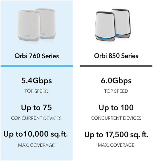 | Tri-band WiFi | Orbi AX5400 Router and AX5400 Satellite |