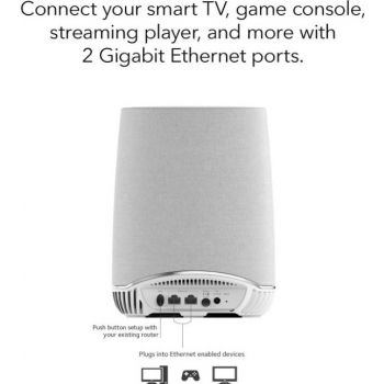 NETGEAR RBS40V-100EUS Orbi Home Mesh Wifi Router, Expansion, Smart Speaker, Alexa built-in, White | RBS40V-100EUS