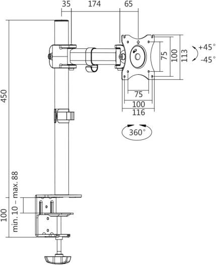91-LDT07C011 The LDT07-C011 allows you to clear out your desk surface, while providing an ergonomic working position. It is designed to use with 13″-27″ monitors. The weight capability is 8kg/17.6Ibs for each arm. Full motion structure allows maximum flexibility — extends, tilt and swivel your monitor up to 90° left and right for easy viewing. Its ball-joint structure allows smooth, effortless rotating and positioning for any direction, making it easy to reduce glare and find the perfect viewing angle. You can also adjust the monitor vertically to a desired position. Besides, cable clip is included for organizing cables. <