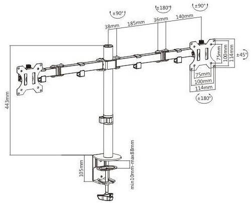 91-LDT12C024N The LDT12-C024N is upgraded monitor arm, which double joint is able to be tightened, so you can adjust exactly how stationary you want everything to be. Constructed of high grade steel, this rugged mount built to resist scratches and supports screens up to 8kg/17.6 lbs and 32″ in size. We made a detachable VESA panel, just simply screw the monitor on the panel and slide back to the mount. Full motion structure allows smooth, effortless rotating and positioning for any direction, making it easy to find the perfect viewing angle. You can also adjust the monitor height vertically to a desired position. Besides, cable clip is included for keeping cables organized and protected. Please refer to product diagram for further details.