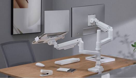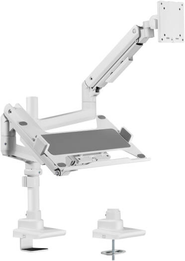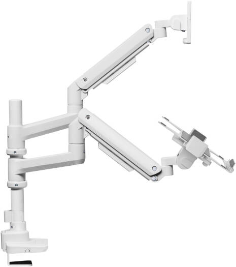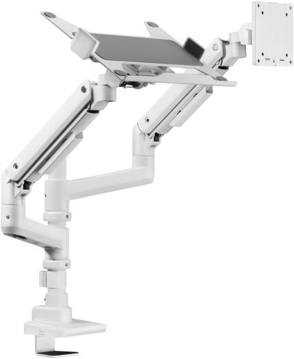Newstar 91-LDT69C024PML Heavy-Duty Monitor Arm with Laptop Holder, 17″-49″ Fit Screen Size, 20kg Weight Capacity (Per Screen), 9kg Max Laptop Weight, VESA Compatible, White | 91-LDT69C024PML