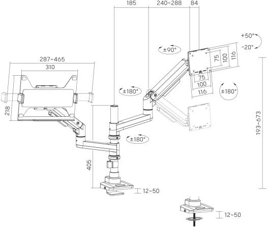 Newstar 91-LDT69C024PML Heavy-Duty Monitor Arm with Laptop Holder, 17″-49″ Fit Screen Size, 20kg Weight Capacity (Per Screen), 9kg Max Laptop Weight,