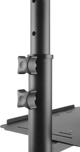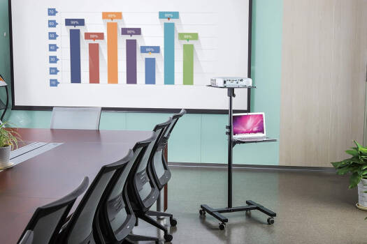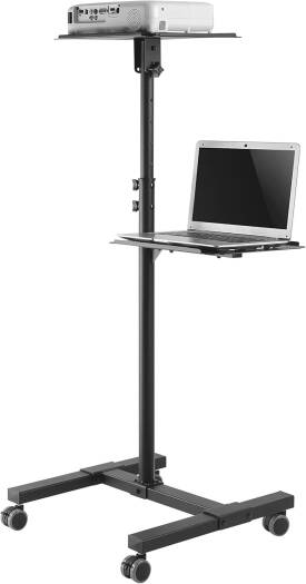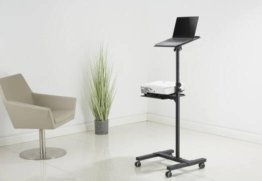 91-TS-8 This height adjustable trolley is a very versatile unit with a large surface to hold projector, laptop, mouse, cup, books and more. Upper shelf can be tilted 12° up and 12° down to optimize best angle, while raised edge keeps your device from sliding off. Movable design with four casters offers extra stability.