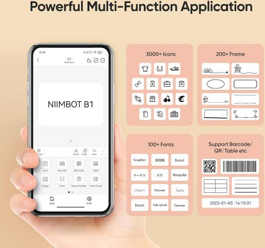 NIIMBOT Thermal Label Maker B1 can support Precut and Non-precut labels, transparent label paper, to meet all labeling needs You can manually select any label size you want Perfectly for home, office, organization, gift and more application