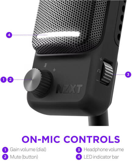 | On-Mic Controls | Headphone volume, Microphone gain, Mute |