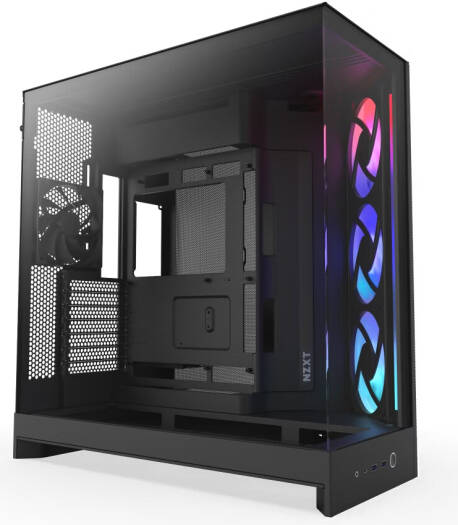 NZXT H9 Flow RGB, Dual-Chamber ATX Mid-Tower Case High-Airflow Design with Panoramic Tempered Glass, Supports Dual 360mm Radiators, Up to 10 Fans, Up To E-ATX Compatibility, Black | CM-H92FB-R1