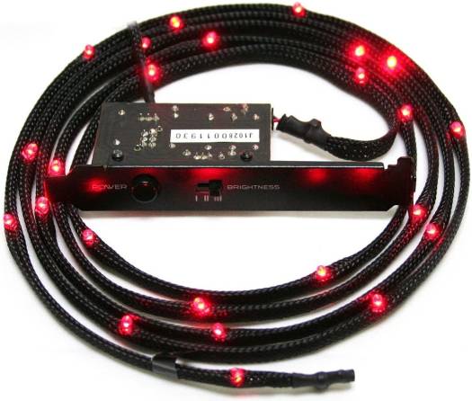 NZXT CB-LED10-OR Overview The NZXT Sleeved LED Kit re-images the way enthusiasts sets up lighting inside the computer case. Traditionally, cold cathodes and even solid LED boards take up large amounts of space inside the case. Using sleeved wires paired with high density amount of LEDs, the NZXT LED kit allows users to hide lights between side panels and under components, creating an amazing glow effect. Lastly, the NZXT Sleeved LED Kit is paired with a three step light sensitivity and on/off light function via PCI keeping the LED kit stealthily hidden away while unused. Easy Management: Designed to take up minimal space and fit in narrow areas in any case, the Sleeved LED Kit provides numerous LEDs on one cable to simplify installation. <span style="f