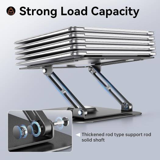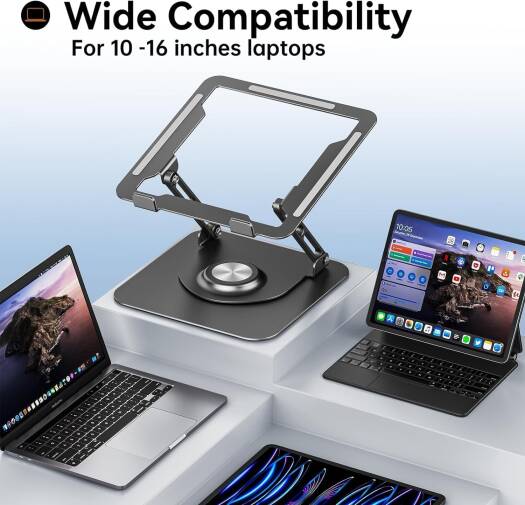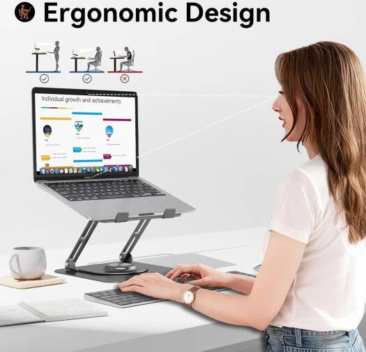 Olige Laptop Stand For Desk, Adjustable Computer Stand With 360° Rotating Base, Ergonomic Laptop Riser For Collaborative Work, Foldable & Portable, Fits All 10-17″ Laptops, Gray | OLG-ST024