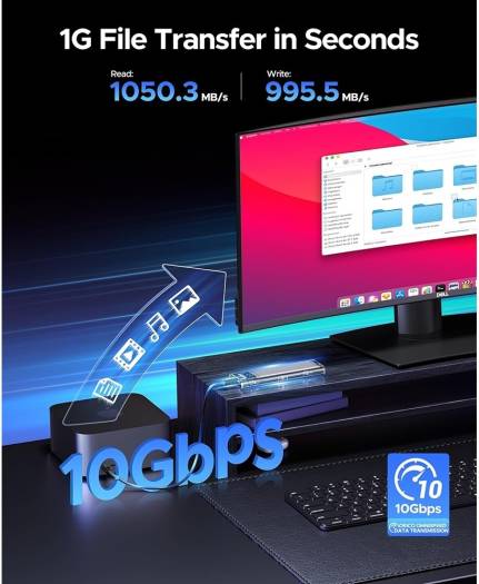 ORICO NVME M.2 to Type-C External Hard Drive Adapter Enclosure NVMe M.2 Enclosure – Based on the JMS583 high-speed and 10 Gbps master control chip, can support NVME M-KEY M.2 PCI-E SSDs. Sliding closure, tool-free mounting method, wide compatibility, supports UASP TRIM protocol. 10 minutes intelligent sleep function Beneficial heat dissipation extends SSD life. High speed transmission – 1G transmission in seconds] USB 3.1 Gen2 Ultra-fast 10 Gbps, low latency and energy efficiency. Two types of cables, extended compatibility: C-to-A interface (5 Gbps) for PC – Enjoy the game at any time; 10 Gb / s C-to-C interface for laptops and C-phones – faster file transfer. Triple heat dissipation – The porous heat dissipation on double-sided copper bars remains stable; Integrated silicon heat dissipation is fast; The design of fine aluminum alloy lines increases the thermal conductivity. Triple heat dissipation, fast cooling. Operating status of the built-in LED monitor clear.