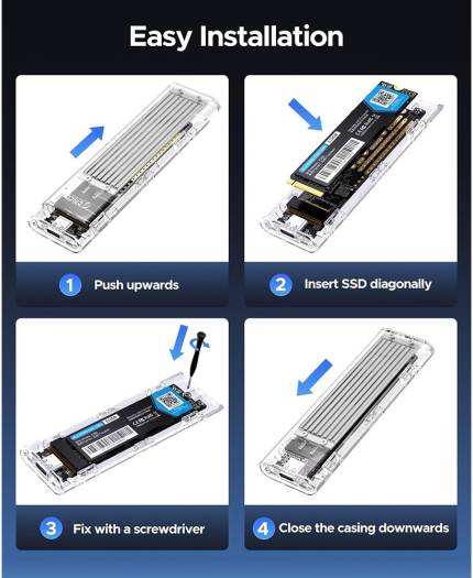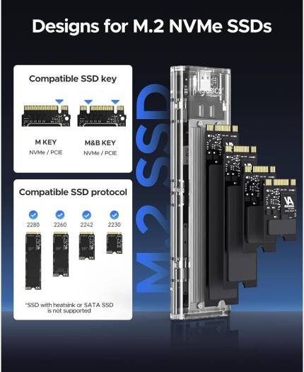 Orico Transparent NVMe M.2 Enclosure Tool-Free USB3.1 Type-C Gen2 10Gbps to M.2 SSD Enclosure for Intel 660p/Samsung 970 EVO/Pro PCIe NVMe M-Key SSD up to 2TB Silver | TCM2-Silver