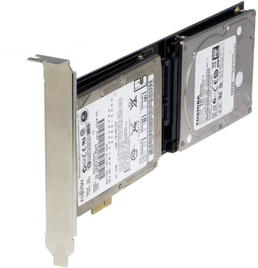 Features : Direct mounting of two 2.5″ SATA III SSd / Hdd on board (SSD not included) Operating System Software can be installed on mounted SSD and booting of the OS from the installed PCIE disk is supported (Your mother board BIOS need to support this feature) Using standard low cost high perfermance 2.5″ SSD instead of the much more expansive mSATA SSD Built in Power circuit, no power connection required. Best for PC / MAC where no extra power connection available Can be used for installion of VMWare ESXI 5.5 as boot disk (need to inject sata-xahci-1.10-1.x86_64.vib to ESXI installation ISO file) Specifications : PCIE 2 Port SATA III (6G) Port Support direct installation of two standard 2.5″ SATA III SSD PCI Express Specification Rev. 2.0 1-Lane (x1) PCI-Express with transfer rate 5Gb/s Full Duplex channel Compliant with Serial ATA 3.0 Specification,Data transfer