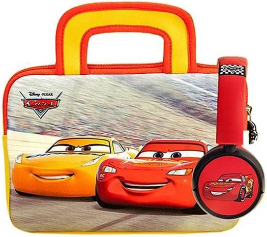 Pebble Gear PG916625M Cars 8″ Carry Bag and Headphone Bundle, Made From Easy to Clean Neoprene, Durable Zip, Red-Yellow | PG916625M